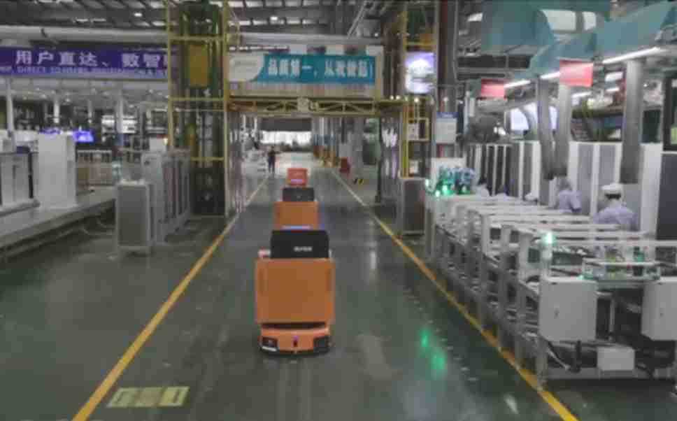 为车载冰箱物流配送打造的智能解决方案,,,,包含产中物流通过潜伏举升AMR搬运至线边,,,,产后成品物流智能仓储,,流程包含产中物流智能齐套入库,,线边安灯叫料AMR智能配送至线边,,成品入库、、、出库,,,通过无人堆高车机器人,,,智能仓储管理替代人工作业管理,,,实现更高存储、、更高效率、、、更具柔性化的解决方案。。